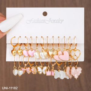 UNI-11182 - Pink Heart & Butterfly - Earrings Set Of 12