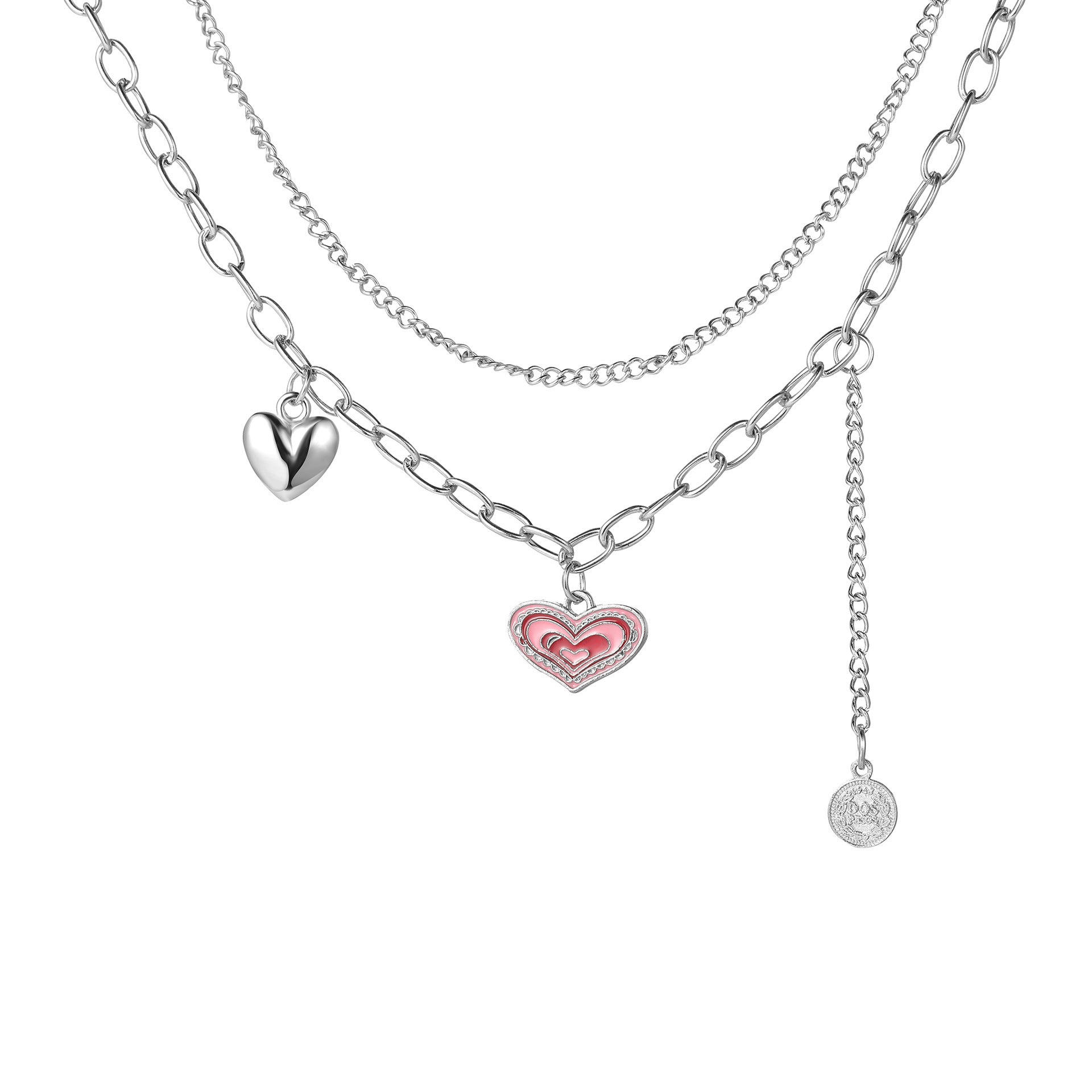 UNI-11206 - Double Layer Heart Silver - Necklace