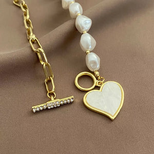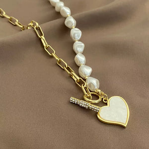UNI-11216 - Pearl & Heart Gold Chain - Necklace