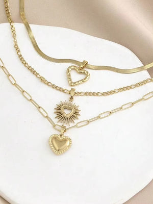UNI-11220 - Gold Heart - Necklace Set Of 3
