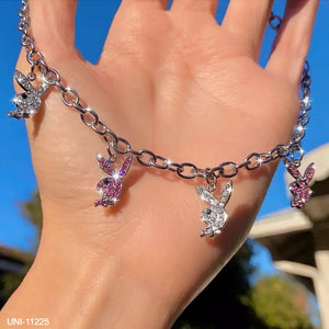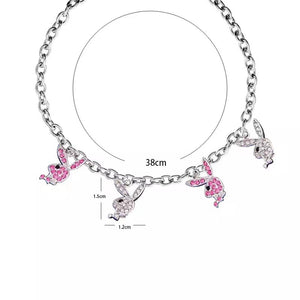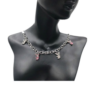 UNI-11225 - Bunny Pink & White Diamond Silver - Necklace