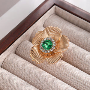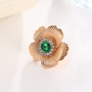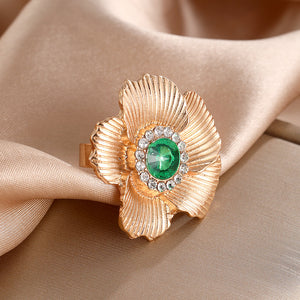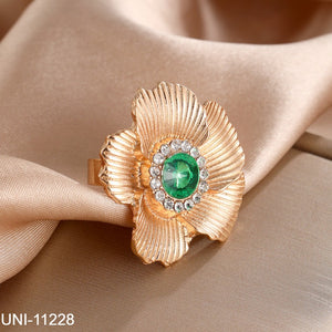 UNI-11228 - Green Diamond Gold Flower - Ring