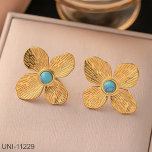 UNI-11230 - Turquoise Stone Gold Flower - Earring