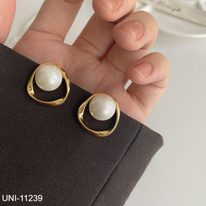 UNI-11239 - Pearl & Gold Round - Earring