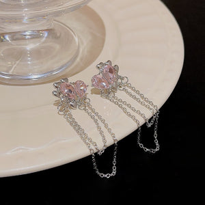 UNI-11265 - Crystal Diamond & Silver Chain - Earring