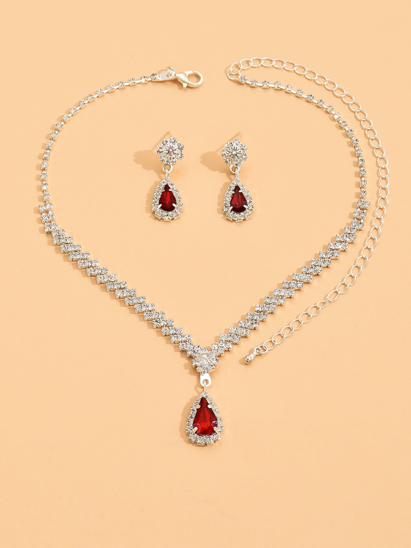 UNI-11363 -Scarlet Red Luxury Diamonds Silver - Jewelry Set