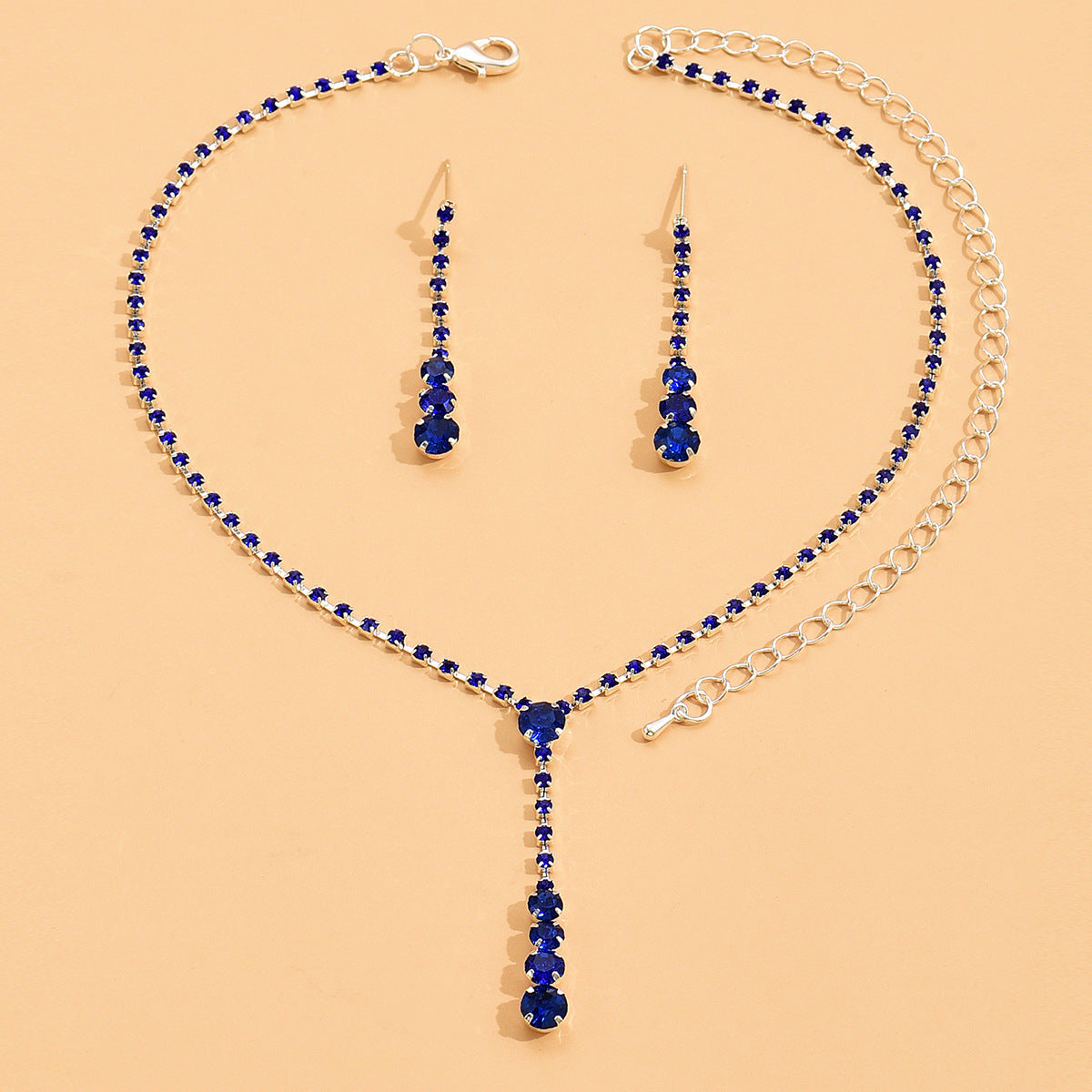 UNI-11370 - Blue Crystal Dimond's Silver - Jewelry Set