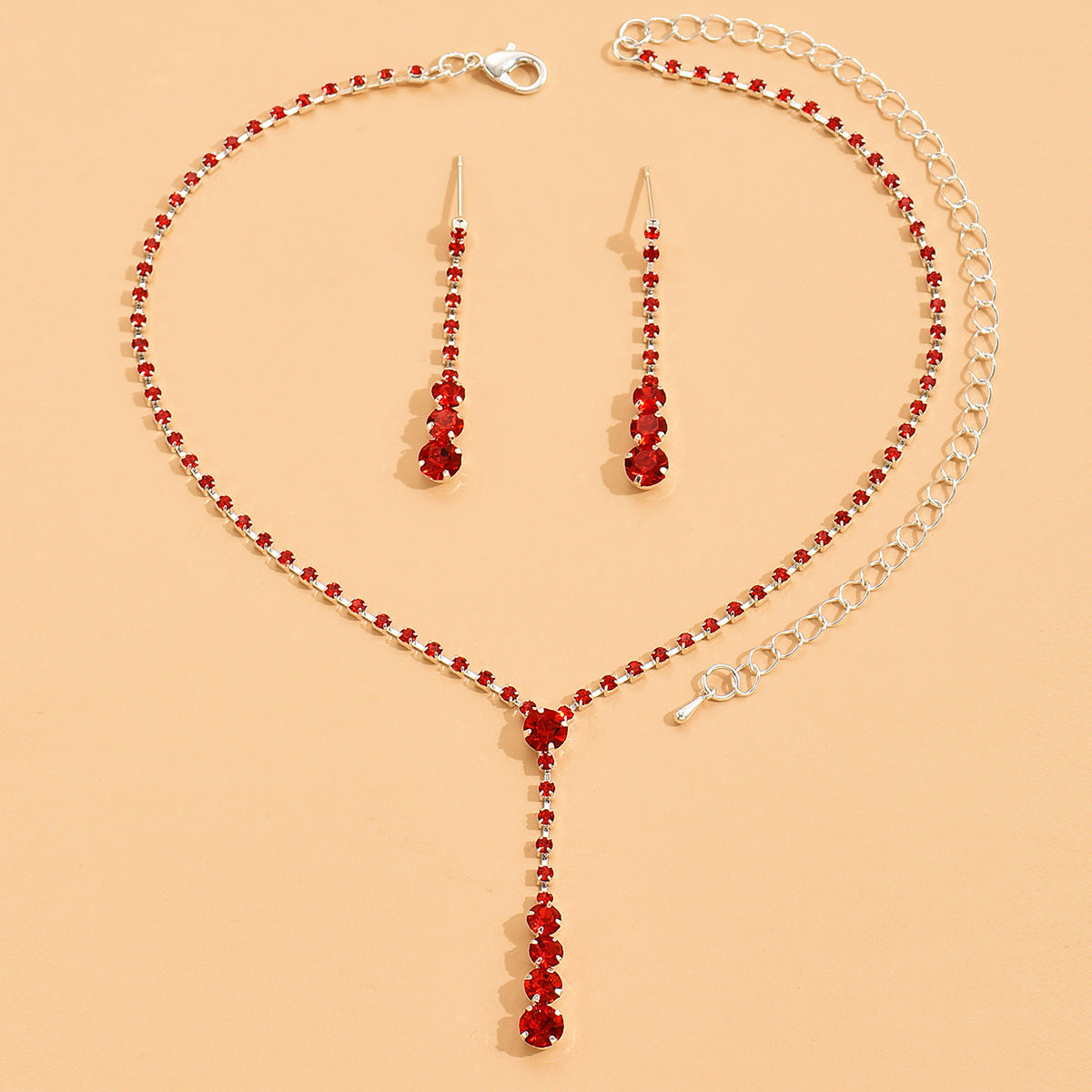 UNI-11372 - Maroon Red Crystal Dimond's Gold - Jewelry Set