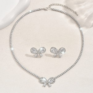 UNI-11379 - White Fancy Bow Diamonds Silver - Jewelry Set