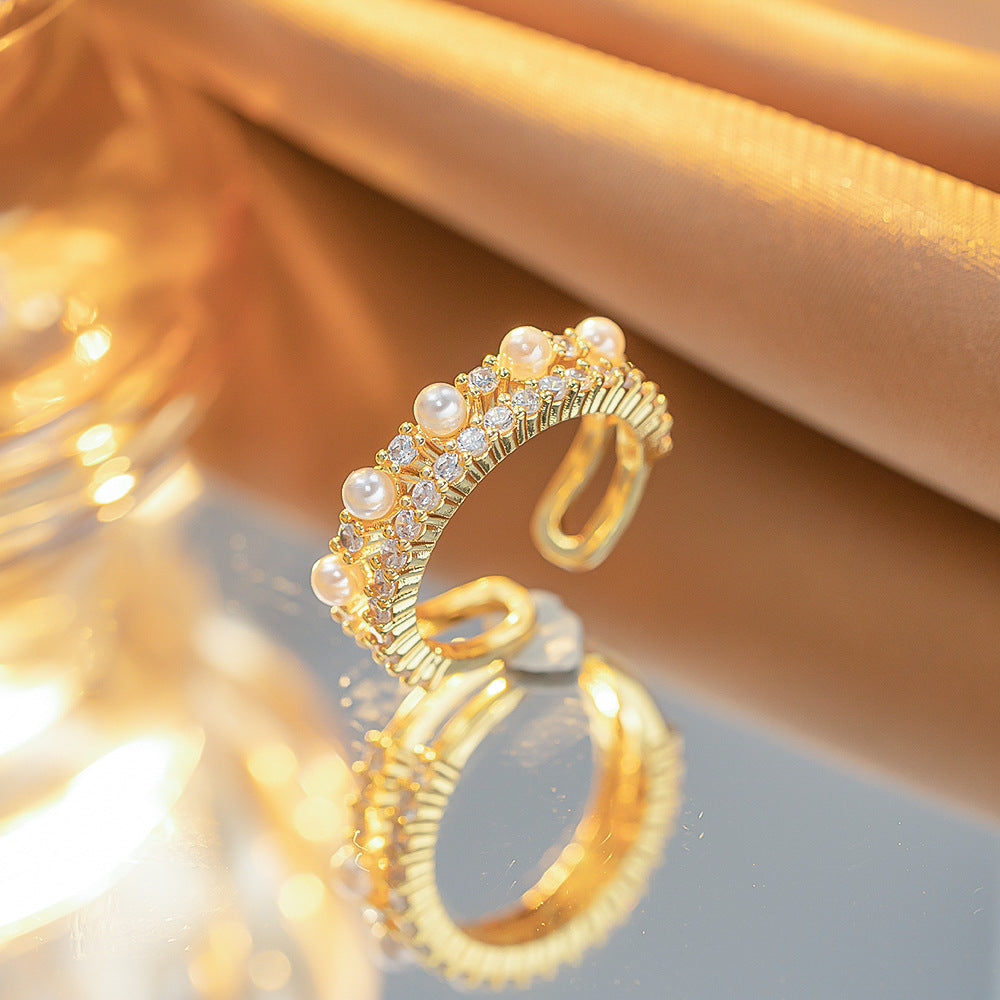 UNI-11458 - Pearl Micro Inlaid Gold - Ring