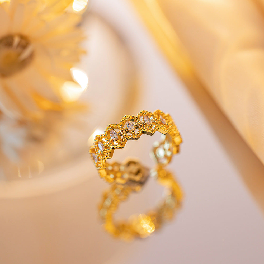 UNI-11466 - Honeycomb Rhombus Daimond Gold - Ring