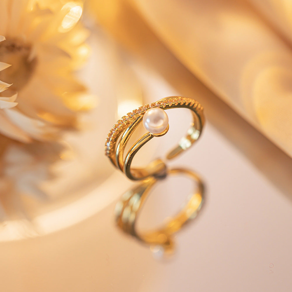 UNI-11472 - Elegant Pearl & Gold - Ring