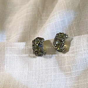 UNI- 11573 - Retro Silver Green Diamond - Earring