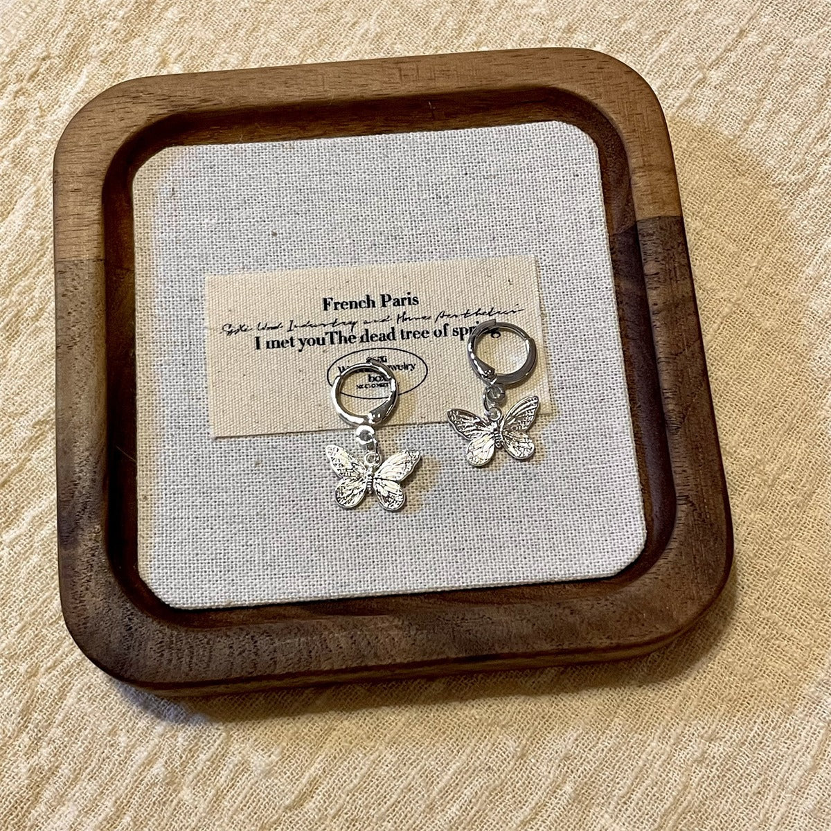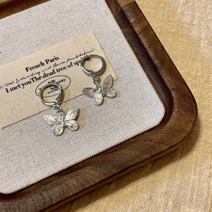 UNI- 11576 -Retro Silver Butterfly - Earring