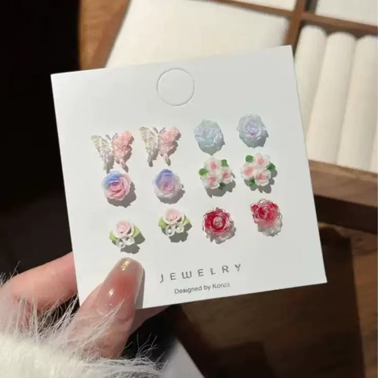 UNI-11580 - Pastel Color Flower & Butterfly - Ear Studs Set Of 6