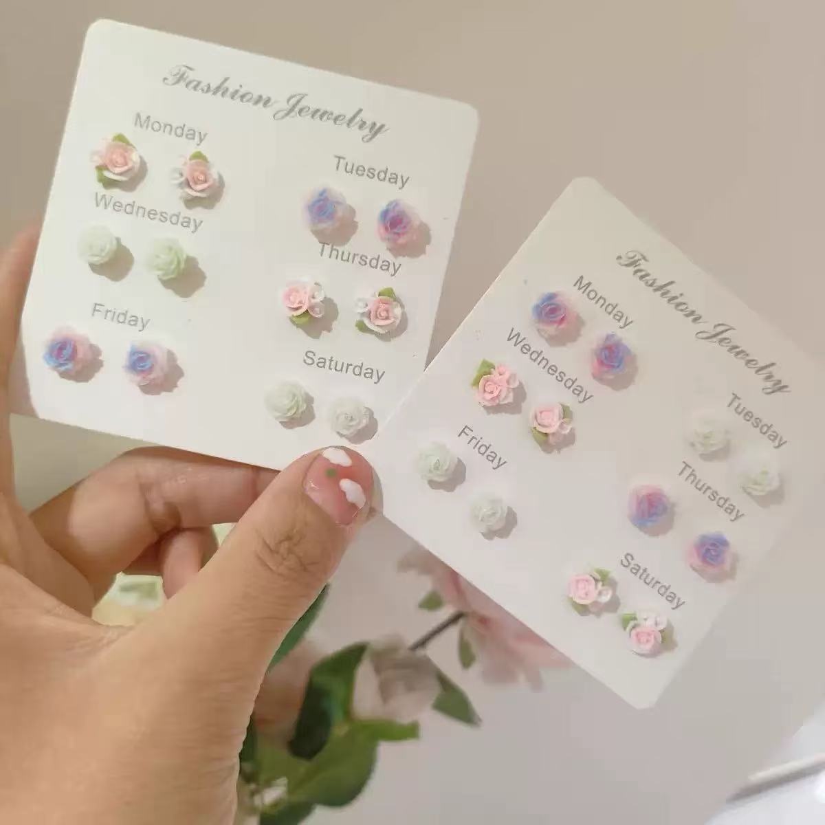 UNI-11586 - Colorful Flowers - Ear Studs Set Of 6
