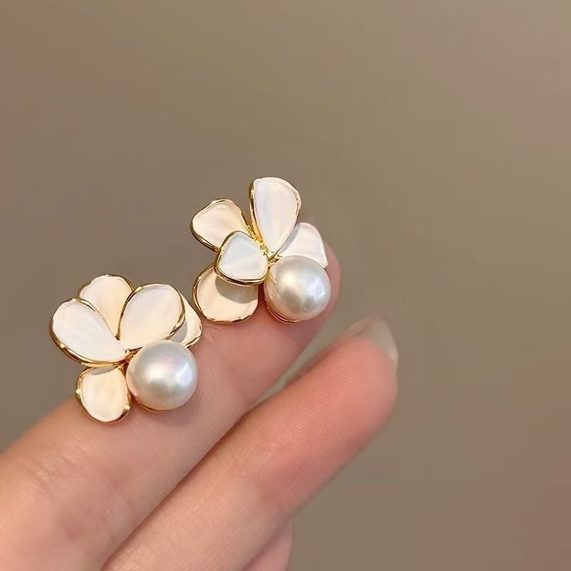 UNI- 11591 - Pearly White Flower - Earring