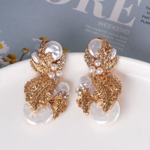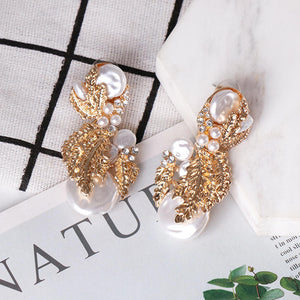 UNI-11596 - Elegant Pearly Leaf - Earring