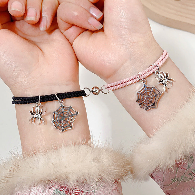 UNI-11770 - Spider Charms Black & Pink Magnetic - Bracelet Set