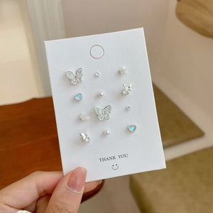 UNI-11900 - Blue Butterfly & Cuties - Ear Studs Set Of 12