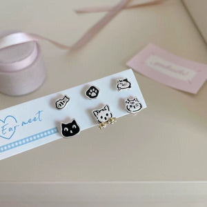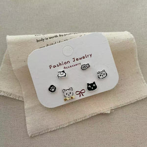 UNI-11903 - Cat Paw & Fish - Ear Studs Set Of 6