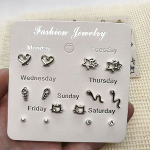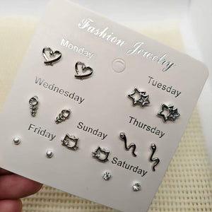UNI-11904 - 7 Days Heart Cuties - Ear Studs Set Of 14