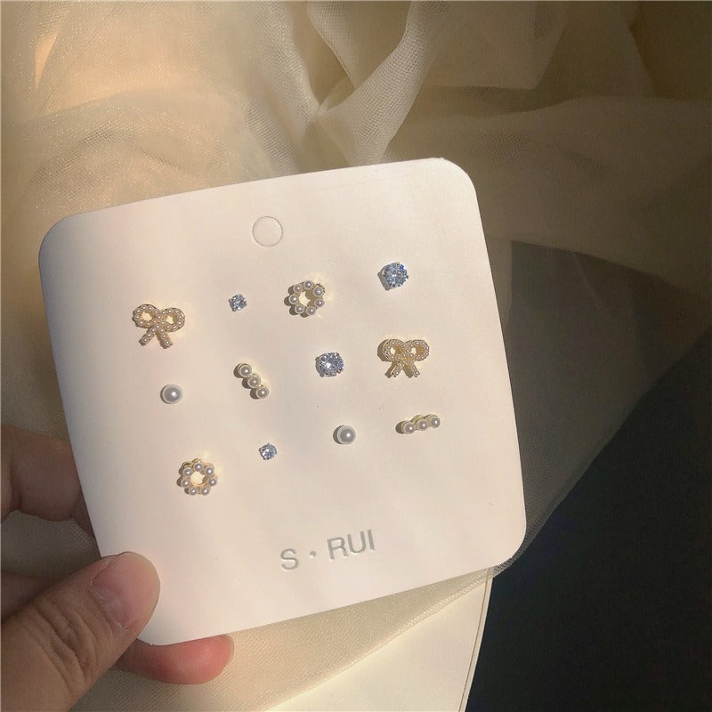 UNI-11906 - Bow & Pearl - Ear Studs Set Of 12