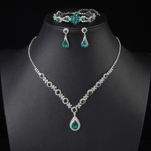 UNI-11939 - Premium Teardrop Emerald Green Diamonds Silver - Jewelry Set Of 3