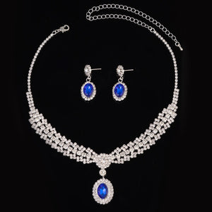 UNI-11943 - Premium Blue & White Diamonds Silver - Jewelry Set