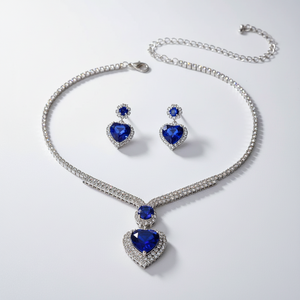 UNI-11948 - Blue Heart Diamonds Silver - Jewelry Set