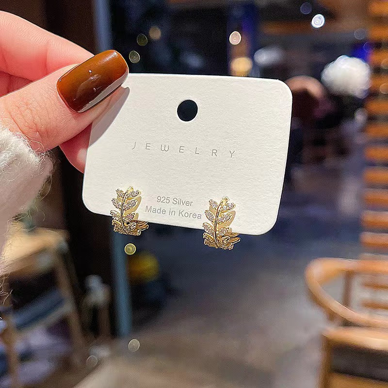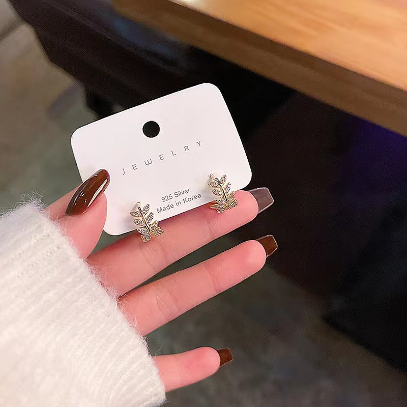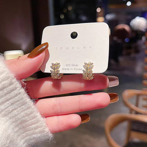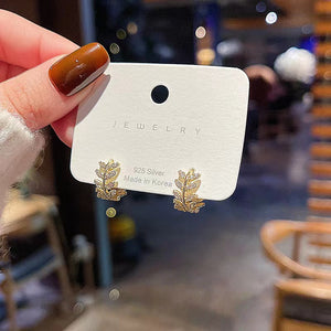 UNI-12127 - Gold Diamonds Leaf - Earring